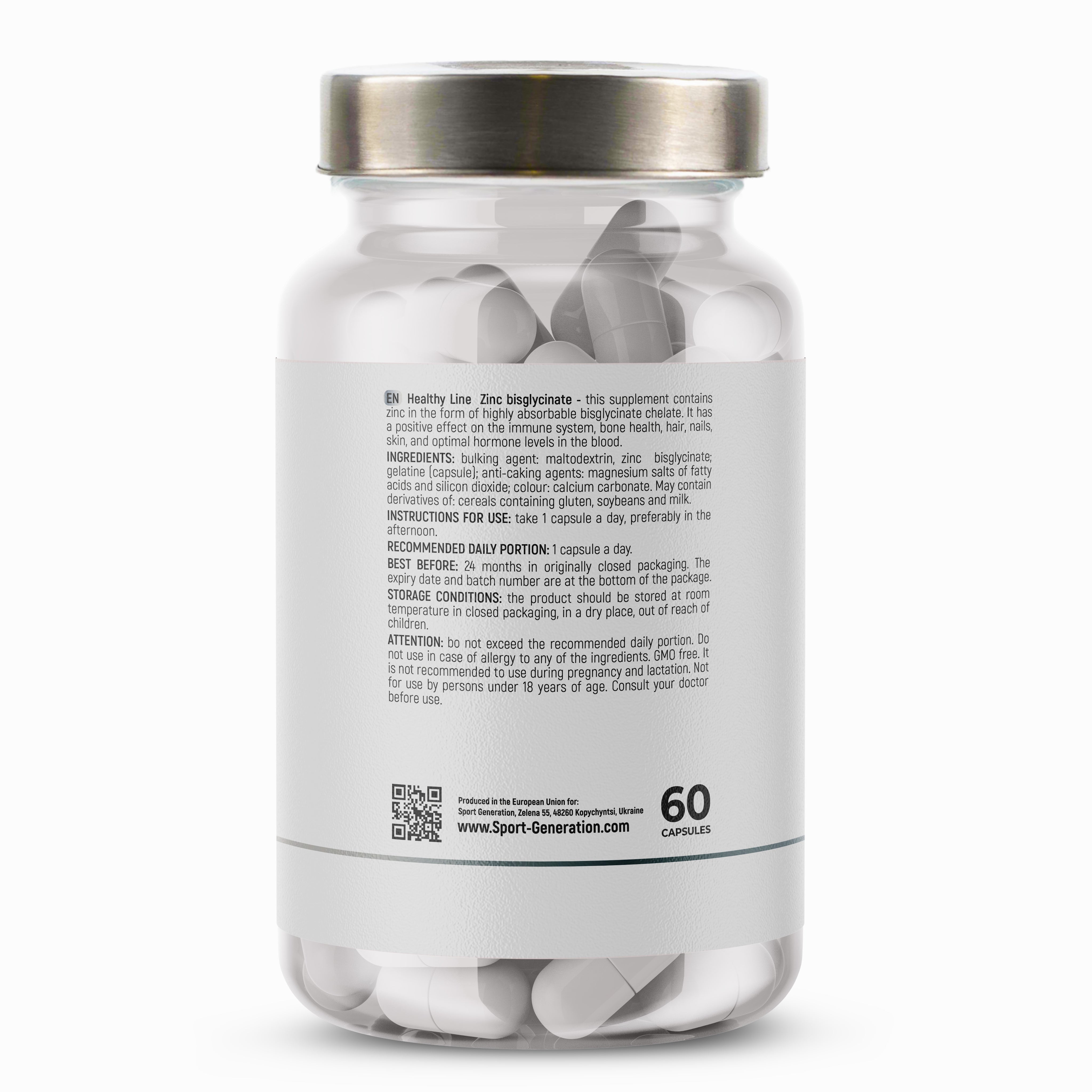 Healthy Line Zinc Bisglycinate 30 mg — це високоефективна органічна форма цинку. Поєднання цього мінералу з амінокислотою гліцином забезпечує максимальну біодоступність та легке засвоєння організмом. Така форма дозволяє швидко і ефективно відновити баланс цинку та підтримати загальний стан здоров’я.
